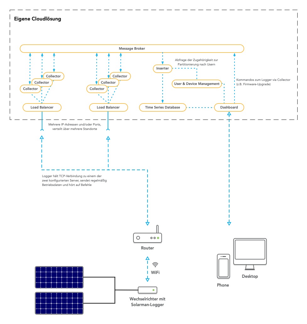 - Alternatives Monitoring-Programm: Mit dem entschlüsselten Daten-Protokoll kann nun auch eine alternative Oberfläche erstellt werden, auf der die Daten des Wechselrichters ausgelesen werden können.