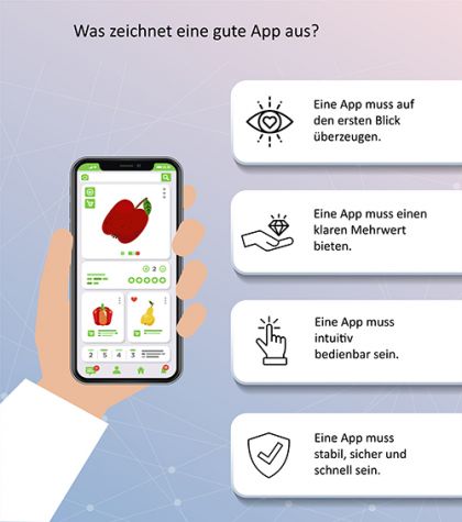 Im Rahmen des Projektes wurde eine Android-App als Demonstrator entwickelt, in der die mit der Handykamera aufgenommenen Bilder der Supermarktprodukte erkannt werden. Der Nutzer der App hat die Möglichkeit, zwischen den erkannten Objekten auf dem Bild das für ihn relevante Lebensmittel auszuwählen, um alle Informationen zur Nachhaltigkeit angezeigt zu bekommen. Doch was macht man, wenn man weder Trainingsdaten noch eine entsprechende IT-Infrastruktur zur Verfügung hat? KI-Spezialist Philip Bende setzte als Grundlage für die Objekterkennung der unterschiedliche Obst- und Gemüseprodukte auf Google Vision AI. Google stellt Bilderkennungsverfahren als API zur Verfügung, die von Softwareentwicklern genutzt und in eigene Anwendungen eingebunden werden können.