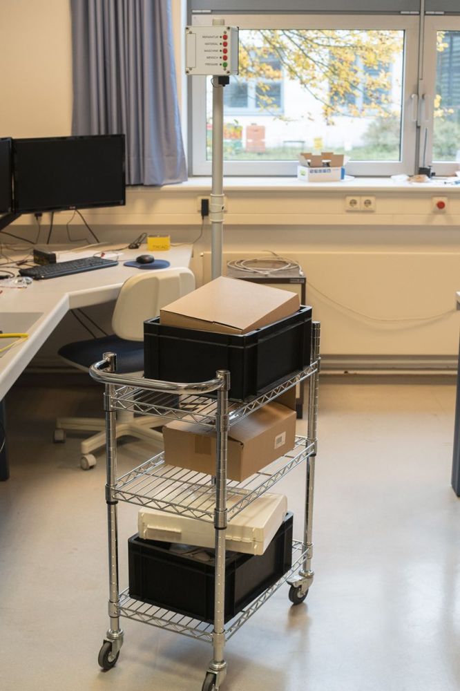 Der vernetzte Transportwagen nutzt dazu das entwickelte µLoc-Ortungssystem, welches auf bis zu 10 cm genau orten kann.