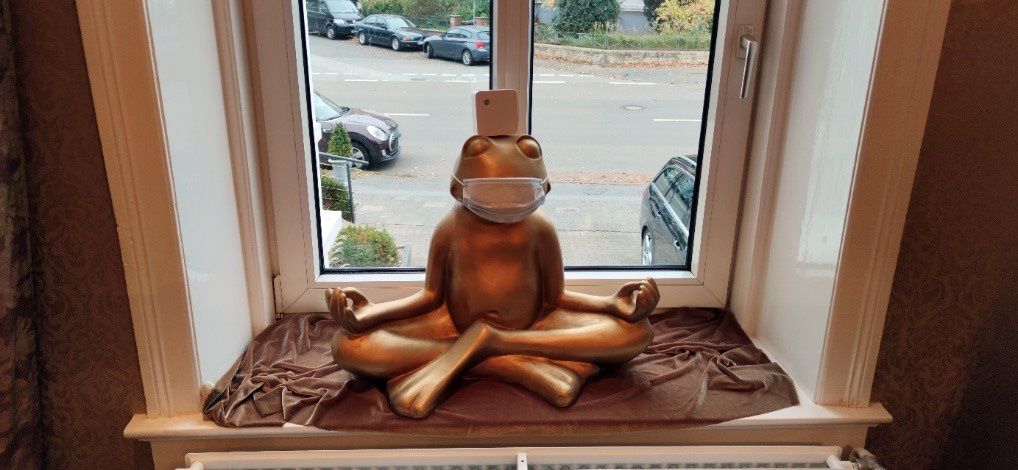 Das ist nun anders: Im Fenster des Salon Wunderschön steht ein Yoga-Frosch mit Maske und einer kleinen weißen Box auf dem Kopf. Bei der kleinen weißen Box handelt es sich um einen Sensor, der regelmäßig den CO2-Gehalt, die Feuchtigkeit und die Temperatur der Luft misst. Alle Daten werden in einem Dashboard gesammelt und visualisiert. So können die Mitarbeiterinnen im Salon jederzeit sehen, wann wieder gelüftet werden sollte. Durch das auf Basis dieser Daten entwickelte Lüftungskonzept ist eine ausreichende Frischluftversorgung garantiert und die Kundinnen und Kunden des Salons fühlen sich gut aufgehoben.